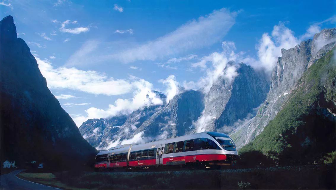 114公里的鐵路線穿過 Dombås 和 Isfjord,一路的自然風(fēng)光令人難忘。